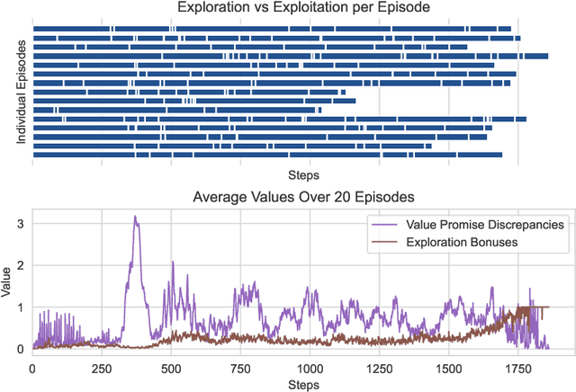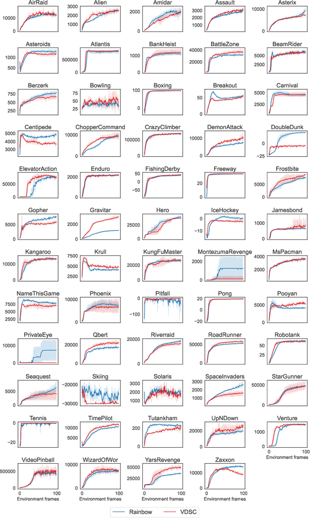 Abstract:Despite the considerable attention given to the questions of \textit{how much} and \textit{how to} explore in deep reinforcement learning, the investigation into \textit{when} to explore remains relatively less researched. While more sophisticated exploration strategies can excel in specific, often sparse reward environments, existing simpler approaches, such as $\epsilon$-greedy, persist in outperforming them across a broader spectrum of domains. The appeal of these simpler strategies lies in their ease of implementation and generality across a wide range of domains. The downside is that these methods are essentially a blind switching mechanism, which completely disregards the agent's internal state. In this paper, we propose to leverage the agent's internal state to decide \textit{when} to explore, addressing the shortcomings of blind switching mechanisms. We present Value Discrepancy and State Counts through homeostasis (VDSC), a novel approach for efficient exploration timing. Experimental results on the Atari suite demonstrate the superiority of our strategy over traditional methods such as $\epsilon$-greedy and Boltzmann, as well as more sophisticated techniques like Noisy Nets.