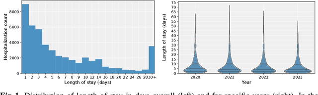 Abstract:Length of hospital stay is a critical metric for assessing healthcare quality and optimizing hospital resource management. This study aims to identify factors influencing LoS within the Italian healthcare context, using a dataset of hospitalization records from over 60 healthcare facilities in the Piedmont region, spanning from 2020 to 2023. We explored a variety of features, including patient characteristics, comorbidities, admission details, and hospital-specific factors. Significant correlations were found between LoS and features such as age group, comorbidity score, admission type, and the month of admission. Machine learning models, specifically CatBoost and Random Forest, were used to predict LoS. The highest R2 score, 0.49, was achieved with CatBoost, demonstrating good predictive performance.