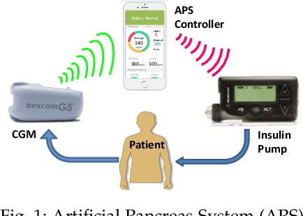 Abstract:Significant advancements in type 1 diabetes treatment have been made in the development of state-of-the-art Artificial Pancreas Systems (APS). However, lapses currently exist in the timely treatment of unsafe blood glucose (BG) levels, especially in the case of rebound hyperglycemia. We propose a machine learning (ML) method for predictive BG scenario categorization that outputs messages alerting the patient to upcoming BG trends to allow for earlier, educated treatment. In addition to standard notifications of predicted hypoglycemia and hyperglycemia, we introduce BG scenario-specific alert messages and the preliminary steps toward precise basal suggestions for the prevention of rebound hyperglycemia. Experimental evaluation on the DCLP3 clinical dataset achieves >98% accuracy and >79% precision for predicting rebound high events for patient alerts.