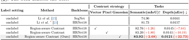 Abstract:In this study, we address the intricate challenge of multi-task dense prediction, encompassing tasks such as semantic segmentation, depth estimation, and surface normal estimation, particularly when dealing with partially annotated data (MTPSL). The complexity arises from the absence of complete task labels for each training image. Given the inter-related nature of these pixel-wise dense tasks, our focus is on mining and capturing cross-task relationships. Existing solutions typically rely on learning global image representations for global cross-task image matching, imposing constraints that, unfortunately, sacrifice the finer structures within the images. Attempting local matching as a remedy faces hurdles due to the lack of precise region supervision, making local alignment a challenging endeavor. The introduction of Segment Anything Model (SAM) sheds light on addressing local alignment challenges by providing free and high-quality solutions for region detection. Leveraging SAM-detected regions, the subsequent challenge lies in aligning the representations within these regions. Diverging from conventional methods that directly learn a monolithic image representation, our proposal involves modeling region-wise representations using Gaussian Distributions. Aligning these distributions between corresponding regions from different tasks imparts higher flexibility and capacity to capture intra-region structures, accommodating a broader range of tasks. This innovative approach significantly enhances our ability to effectively capture cross-task relationships, resulting in improved overall performance in partially supervised multi-task dense prediction scenarios. Extensive experiments conducted on two widely used benchmarks underscore the superior effectiveness of our proposed method, showcasing state-of-the-art performance even when compared to fully supervised methods.