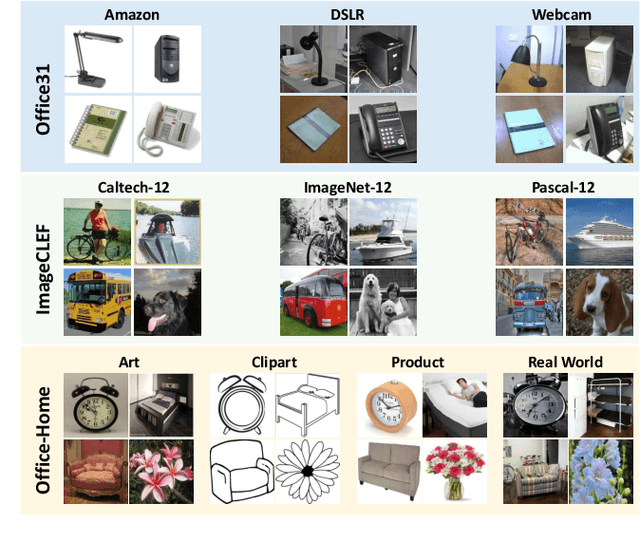 Abstract:Domain adaptation has shown appealing performance by leveraging knowledge from a source domain with rich annotations. However, for a specific target task, it is cumbersome to collect related and high-quality source domains. In real-world scenarios, large-scale datasets corrupted with noisy labels are easy to collect, stimulating a great demand for automatic recognition in a generalized setting, i.e., weakly-supervised partial domain adaptation (WS-PDA), which transfers a classifier from a large source domain with noises in labels to a small unlabeled target domain. As such, the key issues of WS-PDA are: 1) how to sufficiently discover the knowledge from the noisy labeled source domain and the unlabeled target domain, and 2) how to successfully adapt the knowledge across domains. In this paper, we propose a simple yet effective domain adaptation approach, termed as self-paced transfer classifier learning (SP-TCL), to address the above issues, which could be regarded as a well-performing baseline for several generalized domain adaptation tasks. The proposed model is established upon the self-paced learning scheme, seeking a preferable classifier for the target domain. Specifically, SP-TCL learns to discover faithful knowledge via a carefully designed prudent loss function and simultaneously adapts the learned knowledge to the target domain by iteratively excluding source examples from training under the self-paced fashion. Extensive evaluations on several benchmark datasets demonstrate that SP-TCL significantly outperforms state-of-the-art approaches on several generalized domain adaptation tasks.