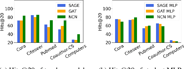 Abstract:Link prediction is a crucial graph-learning task with applications including citation prediction and product recommendation. Distilling Graph Neural Networks (GNNs) teachers into Multi-Layer Perceptrons (MLPs) students has emerged as an effective approach to achieve strong performance and reducing computational cost by removing graph dependency. However, existing distillation methods only use standard GNNs and overlook alternative teachers such as specialized model for link prediction (GNN4LP) and heuristic methods (e.g., common neighbors). This paper first explores the impact of different teachers in GNN-to-MLP distillation. Surprisingly, we find that stronger teachers do not always produce stronger students: MLPs distilled from GNN4LP can underperform those distilled from simpler GNNs, while weaker heuristic methods can teach MLPs to near-GNN performance with drastically reduced training costs. Building on these insights, we propose Ensemble Heuristic-Distilled MLPs (EHDM), which eliminates graph dependencies while effectively integrating complementary signals via a gating mechanism. Experiments on ten datasets show an average 7.93% improvement over previous GNN-to-MLP approaches with 1.95-3.32 times less training time, indicating EHDM is an efficient and effective link prediction method.