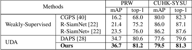 Abstract:Person search (PS) is a challenging computer vision problem where the objective is to achieve joint optimization for pedestrian detection and re-identification (ReID). Although previous advancements have shown promising performance in the field under fully and weakly supervised learning fashion, there exists a major gap in investigating the domain adaptation ability of PS models. In this paper, we propose a diligent domain adaptive mixer (DDAM) for person search (DDAP-PS) framework that aims to bridge a gap to improve knowledge transfer from the labeled source domain to the unlabeled target domain. Specifically, we introduce a novel DDAM module that generates moderate mixed-domain representations by combining source and target domain representations. The proposed DDAM module encourages domain mixing to minimize the distance between the two extreme domains, thereby enhancing the ReID task. To achieve this, we introduce two bridge losses and a disparity loss. The objective of the two bridge losses is to guide the moderate mixed-domain representations to maintain an appropriate distance from both the source and target domain representations. The disparity loss aims to prevent the moderate mixed-domain representations from being biased towards either the source or target domains, thereby avoiding overfitting. Furthermore, we address the conflict between the two subtasks, localization and ReID, during domain adaptation. To handle this cross-task conflict, we forcefully decouple the norm-aware embedding, which aids in better learning of the moderate mixed-domain representation. We conduct experiments to validate the effectiveness of our proposed method. Our approach demonstrates favorable performance on the challenging PRW and CUHK-SYSU datasets. Our source code is publicly available at \url{https://github.com/mustansarfiaz/DDAM-PS}.