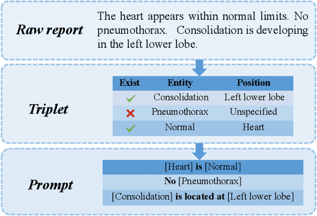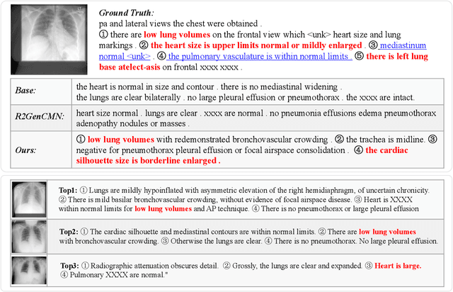 Abstract:Automatic generation of radiology reports holds crucial clinical value, as it can alleviate substantial workload on radiologists and remind less experienced ones of potential anomalies. Despite the remarkable performance of various image captioning methods in the natural image field, generating accurate reports for medical images still faces challenges, i.e., disparities in visual and textual data, and lack of accurate domain knowledge. To address these issues, we propose an enhanced knowledge injection framework, which utilizes two branches to extract different types of knowledge. The Weighted Concept Knowledge (WCK) branch is responsible for introducing clinical medical concepts weighted by TF-IDF scores. The Multimodal Retrieval Knowledge (MRK) branch extracts triplets from similar reports, emphasizing crucial clinical information related to entity positions and existence. By integrating this finer-grained and well-structured knowledge with the current image, we are able to leverage the multi-source knowledge gain to ultimately facilitate more accurate report generation. Extensive experiments have been conducted on two public benchmarks, demonstrating that our method achieves superior performance over other state-of-the-art methods. Ablation studies further validate the effectiveness of two extracted knowledge sources.