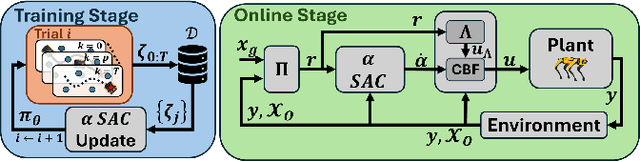 Abstract:Motion planning failures during autonomous navigation often occur when safety constraints are either too conservative, leading to deadlocks, or too liberal, resulting in collisions. To improve robustness, a robot must dynamically adapt its safety constraints to ensure it reaches its goal while balancing safety and performance measures. To this end, we propose a Soft Actor-Critic (SAC)-based policy for adapting Control Barrier Function (CBF) constraint parameters at runtime, ensuring safe yet non-conservative motion. The proposed approach is designed for a general high-level motion planner, low-level controller, and target system model, and is trained in simulation only. Through extensive simulations and physical experiments, we demonstrate that our framework effectively adapts CBF constraints, enabling the robot to reach its final goal without compromising safety.