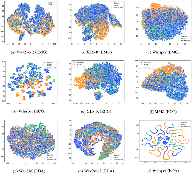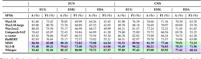 Abstract:Despite being trained exclusively on speech data, speech foundation models (SFMs) like Whisper have shown impressive performance in non-speech tasks such as audio classification. This is partly because speech shares some common traits with audio, enabling SFMs to transfer effectively. In this study, we push the boundaries by evaluating SFMs on a more challenging out-of-domain (OOD) task: classifying physiological time-series signals. We test two key hypotheses: first, that SFMs can generalize to physiological signals by capturing shared temporal patterns; second, that multilingual SFMs will outperform others due to their exposure to greater variability during pre-training, leading to more robust, generalized representations. Our experiments, conducted for stress recognition using ECG (Electrocardiogram), EMG (Electromyography), and EDA (Electrodermal Activity) signals, reveal that models trained on SFM-derived representations outperform those trained on raw physiological signals. Among all models, multilingual SFMs achieve the highest accuracy, supporting our hypothesis and demonstrating their OOD capabilities. This work positions SFMs as promising tools for new uncharted domains beyond speech.