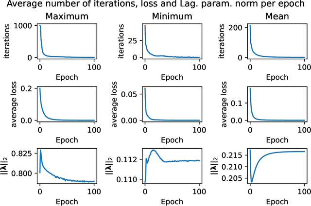 Abstract:We seek to impose linear, equality constraints in feedforward neural networks. As top layer predictors are usually nonlinear, this is a difficult task if we seek to deploy standard convex optimization methods and strong duality. To overcome this, we introduce a new saddle-point Lagrangian with auxiliary predictor variables on which constraints are imposed. Elimination of the auxiliary variables leads to a dual minimization problem on the Lagrange multipliers introduced to satisfy the linear constraints. This minimization problem is combined with the standard learning problem on the weight matrices. From this theoretical line of development, we obtain the surprising interpretation of Lagrange parameters as additional, penultimate layer hidden units with fixed weights stemming from the constraints. Consequently, standard minimization approaches can be used despite the inclusion of Lagrange parameters -- a very satisfying, albeit unexpected, discovery. Examples ranging from multi-label classification to constrained autoencoders are envisaged in the future.