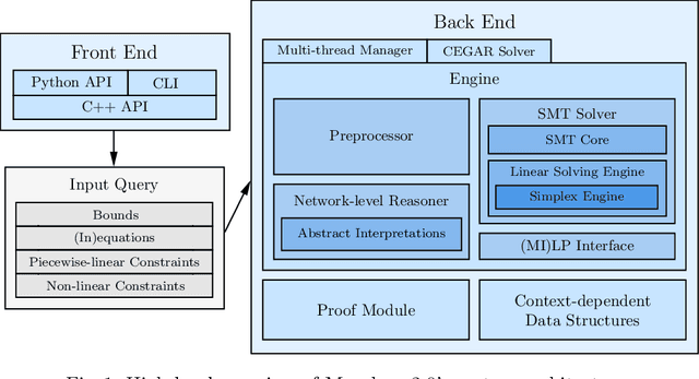 Abstract:This paper serves as a comprehensive system description of version 2.0 of the Marabou framework for formal analysis of neural networks. We discuss the tool's architectural design and highlight the major features and components introduced since its initial release.