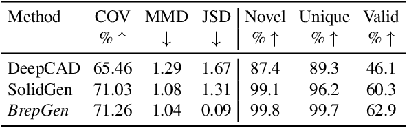 Abstract:This paper presents BrepGen, a diffusion-based generative approach that directly outputs a Boundary representation (B-rep) Computer-Aided Design (CAD) model. BrepGen represents a B-rep model as a novel structured latent geometry in a hierarchical tree. With the root node representing a whole CAD solid, each element of a B-rep model (i.e., a face, an edge, or a vertex) progressively turns into a child-node from top to bottom. B-rep geometry information goes into the nodes as the global bounding box of each primitive along with a latent code describing the local geometric shape. The B-rep topology information is implicitly represented by node duplication. When two faces share an edge, the edge curve will appear twice in the tree, and a T-junction vertex with three incident edges appears six times in the tree with identical node features. Starting from the root and progressing to the leaf, BrepGen employs Transformer-based diffusion models to sequentially denoise node features while duplicated nodes are detected and merged, recovering the B-Rep topology information. Extensive experiments show that BrepGen sets a new milestone in CAD B-rep generation, surpassing existing methods on various benchmarks. Results on our newly collected furniture dataset further showcase its exceptional capability in generating complicated geometry. While previous methods were limited to generating simple prismatic shapes, BrepGen incorporates free-form and doubly-curved surfaces for the first time. Additional applications of BrepGen include CAD autocomplete and design interpolation. The code, pretrained models, and dataset will be released.