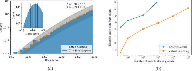 Abstract:Despite substantial progress in machine learning for scientific discovery in recent years, truly de novo design of small molecules which exhibit a property of interest remains a significant challenge. We introduce LambdaZero, a generative active learning approach to search for synthesizable molecules. Powered by deep reinforcement learning, LambdaZero learns to search over the vast space of molecules to discover candidates with a desired property. We apply LambdaZero with molecular docking to design novel small molecules that inhibit the enzyme soluble Epoxide Hydrolase 2 (sEH), while enforcing constraints on synthesizability and drug-likeliness. LambdaZero provides an exponential speedup in terms of the number of calls to the expensive molecular docking oracle, and LambdaZero de novo designed molecules reach docking scores that would otherwise require the virtual screening of a hundred billion molecules. Importantly, LambdaZero discovers novel scaffolds of synthesizable, drug-like inhibitors for sEH. In in vitro experimental validation, a series of ligands from a generated quinazoline-based scaffold were synthesized, and the lead inhibitor N-(4,6-di(pyrrolidin-1-yl)quinazolin-2-yl)-N-methylbenzamide (UM0152893) displayed sub-micromolar enzyme inhibition of sEH.