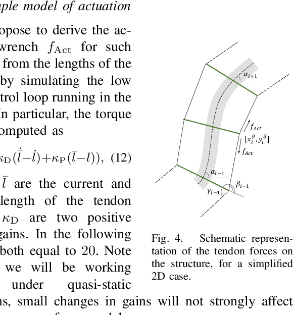 Abstract:Soft robot are celebrated for their propensity to enable compliant and complex robot-environment interactions. Soft robotic manipulators, or slender continuum structure robots have the potential to exploit these interactions to enable new exploration and manipulation capabilities and safe human-robot interactions. However, the interactions, or perturbations by external forces cause the soft structure to deform in an infinite degree of freedom (DOF) space. To control such system, reduced order models are needed; typically models consider piecewise sections of constant curvature although external forces often deform the structure out of the constant curvature hypothesis. In this work we perform an analysis of the trade-off between computational treatability and modelling accuracy. We then propose a new kinematic model, the Piecewise Affine Curvature (PAC) which we validate theoretically and experimentally showing that this higher-order model better captures the configuration of a soft continuum body robot when perturbed by the external forces. In comparison to the current state of the art Piecewise Constant Curvature (PCC) model we demonstrate up to 30\% reduction in error for the end position of a soft continuum body robot.