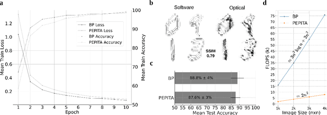 Abstract:This work evaluates a forward-only learning algorithm on the MNIST dataset with hardware-in-the-loop training of a 4f optical correlator, achieving 87.6% accuracy with O(n2) complexity, compared to backpropagation, which achieves 88.8% accuracy with O(n2 log n) complexity.
