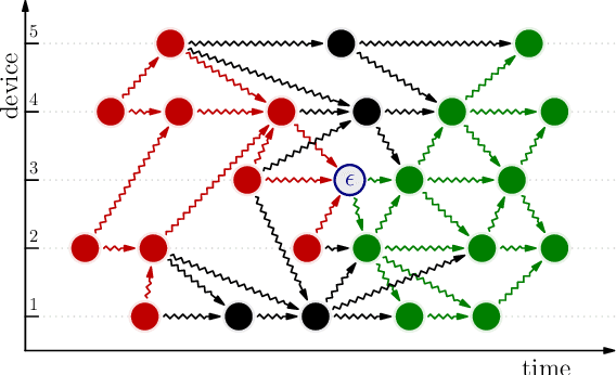 Abstract:Recent trends like the Internet of Things (IoT) suggest a vision of dense and multi-scale deployments of computing devices in nearly all kinds of environments. A prominent engineering challenge revolves around programming the collective adaptive behaviour of such computational ecosystems. This requires abstractions able to capture concepts like ensembles (dynamic groups of cooperating devices) and collective tasks (joint activities carried out by ensembles). In this work, we consider collections of devices interacting with neighbours and that execute in nearly-synchronised sense-compute-interact rounds, where the computation is given by a single program mapping sensing values and incoming messages to output and outcoming messages. To support programming whole computational collectives, we propose the abstraction of a distributed collective process, which can be used to define at once the ensemble formation logic and its collective task. We formalise the abstraction in the eXchange Calculus (XC), a core functional language based on neighbouring values (maps from neighbours to values) where state and interaction is handled through a single primitive, exchange, and provide a corresponding implementation in the FCPP language. Then, we exercise distributed collective processes using two case studies: multi-hop message propagation and distributed monitoring of spatial properties. Finally, we discuss the features of the abstraction and its suitability for different kinds of distributed computing applications.