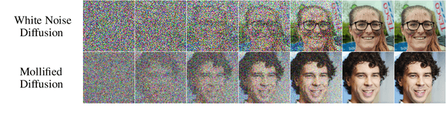 Abstract:We introduce $\infty$-Diff, a generative diffusion model which directly operates on infinite resolution data. By randomly sampling subsets of coordinates during training and learning to denoise the content at those coordinates, a continuous function is learned that allows sampling at arbitrary resolutions. In contrast to other recent infinite resolution generative models, our approach operates directly on the raw data, not requiring latent vector compression for context, using hypernetworks, nor relying on discrete components. As such, our approach achieves significantly higher sample quality, as evidenced by lower FID scores, as well as being able to effectively scale to higher resolutions than the training data while retaining detail.