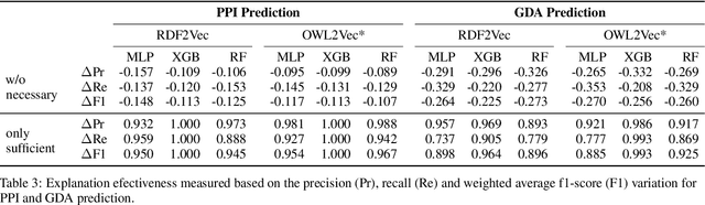 Abstract:Knowledge graphs represent real-world entities and their relations in a semantically-rich structure supported by ontologies. Exploring this data with machine learning methods often relies on knowledge graph embeddings, which produce latent representations of entities that preserve structural and local graph neighbourhood properties, but sacrifice explainability. However, in tasks such as link or relation prediction, understanding which specific features better explain a relation is crucial to support complex or critical applications. We propose SEEK, a novel approach for explainable representations to support relation prediction in knowledge graphs. It is based on identifying relevant shared semantic aspects (i.e., subgraphs) between entities and learning representations for each subgraph, producing a multi-faceted and explainable representation. We evaluate SEEK on two real-world highly complex relation prediction tasks: protein-protein interaction prediction and gene-disease association prediction. Our extensive analysis using established benchmarks demonstrates that SEEK achieves significantly better performance than standard learning representation methods while identifying both sufficient and necessary explanations based on shared semantic aspects.