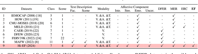 Abstract:The performance of CLIP in dynamic facial expression recognition (DFER) task doesn't yield exceptional results as observed in other CLIP-based classification tasks. While CLIP's primary objective is to achieve alignment between images and text in the feature space, DFER poses challenges due to the abstract nature of text and the dynamic nature of video, making label representation limited and perfect alignment difficult. To address this issue, we have designed A$^{3}$lign-DFER, which introduces a new DFER labeling paradigm to comprehensively achieve alignment, thus enhancing CLIP's suitability for the DFER task. Specifically, our A$^{3}$lign-DFER method is designed with multiple modules that work together to obtain the most suitable expanded-dimensional embeddings for classification and to achieve alignment in three key aspects: affective, dynamic, and bidirectional. We replace the input label text with a learnable Multi-Dimensional Alignment Token (MAT), enabling alignment of text to facial expression video samples in both affective and dynamic dimensions. After CLIP feature extraction, we introduce the Joint Dynamic Alignment Synchronizer (JAS), further facilitating synchronization and alignment in the temporal dimension. Additionally, we implement a Bidirectional Alignment Training Paradigm (BAP) to ensure gradual and steady training of parameters for both modalities. Our insightful and concise A$^{3}$lign-DFER method achieves state-of-the-art results on multiple DFER datasets, including DFEW, FERV39k, and MAFW. Extensive ablation experiments and visualization studies demonstrate the effectiveness of A$^{3}$lign-DFER. The code will be available in the future.