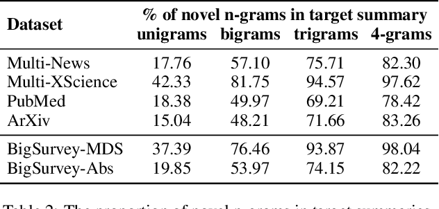 Abstract:Writing a survey paper on one research topic usually needs to cover the salient content from numerous related papers, which can be modeled as a multi-document summarization (MDS) task. Existing MDS datasets usually focus on producing the structureless summary covering a few input documents. Meanwhile, previous structured summary generation works focus on summarizing a single document into a multi-section summary. These existing datasets and methods cannot meet the requirements of summarizing numerous academic papers into a structured summary. To deal with the scarcity of available data, we propose BigSurvey, the first large-scale dataset for generating comprehensive summaries of numerous academic papers on each topic. We collect target summaries from more than seven thousand survey papers and utilize their 430 thousand reference papers' abstracts as input documents. To organize the diverse content from dozens of input documents and ensure the efficiency of processing long text sequences, we propose a summarization method named category-based alignment and sparse transformer (CAST). The experimental results show that our CAST method outperforms various advanced summarization methods.