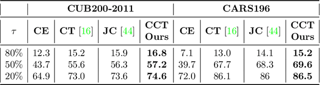 Abstract:Deep Metric Learning algorithms aim to learn an efficient embedding space to preserve the similarity relationships among the input data. Whilst these algorithms have achieved significant performance gains across a wide plethora of tasks, they have also failed to consider and increase comprehensive similarity constraints; thus learning a sub-optimal metric in the embedding space. Moreover, up until now; there have been few studies with respect to their performance in the presence of noisy labels. Here, we address the concern of learning a discriminative deep embedding space by designing a novel, yet effective Deep Class-wise Discrepancy Loss (DCDL) function that segregates the underlying similarity distributions (thus introducing class-wise discrepancy) of the embedding points between each and every class. Our empirical results across three standard image classification datasets and two fine-grained image recognition datasets in the presence and absence of noise clearly demonstrate the need for incorporating such class-wise similarity relationships along with traditional algorithms while learning a discriminative embedding space.