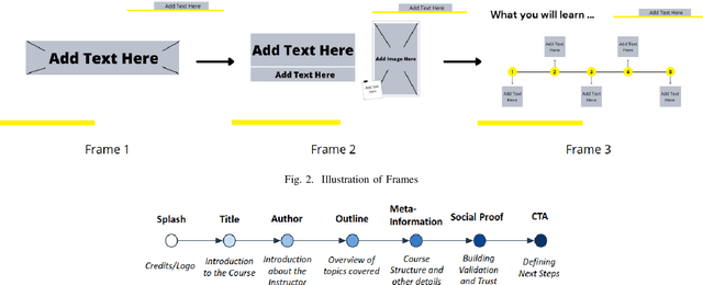 Abstract:In this paper, we propose an AI based approach to Trailer Generation in the form of short videos for online educational courses. Trailers give an overview of the course to the learners and help them make an informed choice about the courses they want to learn. It also helps to generate curiosity and interest among the learners and encourages them to pursue a course. While it is possible to manually generate the trailers, it requires extensive human efforts and skills over a broad spectrum of design, span selection, video editing, domain knowledge, etc., thus making it time-consuming and expensive, especially in an academic setting. The framework we propose in this work is a template based method for video trailer generation, where most of the textual content of the trailer is auto-generated and the trailer video is automatically generated, by leveraging Machine Learning and Natural Language Processing techniques. The proposed trailer is in the form of a timeline consisting of various fragments created by selecting, para-phrasing or generating content using various proposed techniques. The fragments are further enhanced by adding voice-over text, subtitles, animations, etc., to create a holistic experience. Finally, we perform user evaluation with 63 human evaluators for evaluating the trailers generated by our system and the results obtained were encouraging.