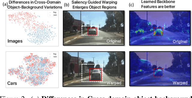 Abstract:In visual recognition, scale bias is a key challenge due to the imbalance of object and image size distribution inherent in real scene datasets. Conventional solutions involve injecting scale invariance priors, oversampling the dataset at different scales during training, or adjusting scale at inference. While these strategies mitigate scale bias to some extent, their ability to adapt across diverse datasets is limited. Besides, they increase computational load during training and latency during inference. In this work, we use adaptive attentional processing -- oversampling salient object regions by warping images in-place during training. Discovering that shifting the source scale distribution improves backbone features, we developed a instance-level warping guidance aimed at object region sampling to mitigate source scale bias in domain adaptation. Our approach improves adaptation across geographies, lighting and weather conditions, is agnostic to the task, domain adaptation algorithm, saliency guidance, and underlying model architecture. Highlights include +6.1 mAP50 for BDD100K Clear $\rightarrow$ DENSE Foggy, +3.7 mAP50 for BDD100K Day $\rightarrow$ Night, +3.0 mAP50 for BDD100K Clear $\rightarrow$ Rainy, and +6.3 mIoU for Cityscapes $\rightarrow$ ACDC. Our approach adds minimal memory during training and has no additional latency at inference time. Please see Appendix for more results and analysis.