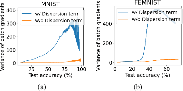 Abstract:Backward error analysis allows finding a modified loss function, which the parameter updates really follow under the influence of an optimization method. The additional loss terms included in this modified function is called implicit regularizer. In this paper, we attempt to find the implicit regularizer for various federated learning algorithms on non-IID data distribution, and explain why each method shows different convergence behavior. We first show that the implicit regularizer of FedAvg disperses the gradient of each client from the average gradient, thus increasing the gradient variance. We also empirically show that the implicit regularizer hampers its convergence. Similarly, we compute the implicit regularizers of FedSAM and SCAFFOLD, and explain why they converge better. While existing convergence analyses focus on pointing out the advantages of FedSAM and SCAFFOLD, our approach can explain their limitations in complex non-convex settings. In specific, we demonstrate that FedSAM can partially remove the bias in the first-order term of the implicit regularizer in FedAvg, whereas SCAFFOLD can fully eliminate the bias in the first-order term, but not in the second-order term. Consequently, the implicit regularizer can provide a useful insight on the convergence behavior of federated learning from a different theoretical perspective.