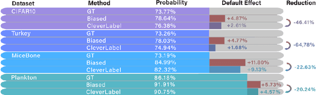 Abstract:High-quality data is crucial for the success of machine learning, but labeling large datasets is often a time-consuming and costly process. While semi-supervised learning can help mitigate the need for labeled data, label quality remains an open issue due to ambiguity and disagreement among annotators. Thus, we use proposal-guided annotations as one option which leads to more consistency between annotators. However, proposing a label increases the probability of the annotators deciding in favor of this specific label. This introduces a bias which we can simulate and remove. We propose a new method CleverLabel for Cost-effective LabEling using Validated proposal-guidEd annotations and Repaired LABELs. CleverLabel can reduce labeling costs by up to 30.0%, while achieving a relative improvement in Kullback-Leibler divergence of up to 29.8% compared to the previous state-of-the-art on a multi-domain real-world image classification benchmark. CleverLabel offers a novel solution to the challenge of efficiently labeling large datasets while also improving the label quality.