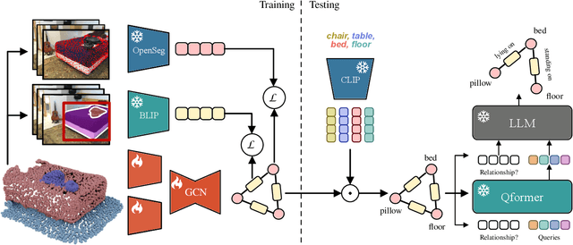 Abstract:Current approaches for 3D scene graph prediction rely on labeled datasets to train models for a fixed set of known object classes and relationship categories. We present Open3DSG, an alternative approach to learn 3D scene graph prediction in an open world without requiring labeled scene graph data. We co-embed the features from a 3D scene graph prediction backbone with the feature space of powerful open world 2D vision language foundation models. This enables us to predict 3D scene graphs from 3D point clouds in a zero-shot manner by querying object classes from an open vocabulary and predicting the inter-object relationships from a grounded LLM with scene graph features and queried object classes as context. Open3DSG is the first 3D point cloud method to predict not only explicit open-vocabulary object classes, but also open-set relationships that are not limited to a predefined label set, making it possible to express rare as well as specific objects and relationships in the predicted 3D scene graph. Our experiments show that Open3DSG is effective at predicting arbitrary object classes as well as their complex inter-object relationships describing spatial, supportive, semantic and comparative relationships.