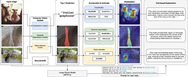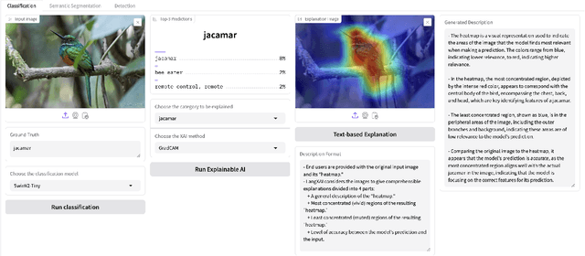 Abstract:LangXAI is a framework that integrates Explainable Artificial Intelligence (XAI) with advanced vision models to generate textual explanations for visual recognition tasks. Despite XAI advancements, an understanding gap persists for end-users with limited domain knowledge in artificial intelligence and computer vision. LangXAI addresses this by furnishing text-based explanations for classification, object detection, and semantic segmentation model outputs to end-users. Preliminary results demonstrate LangXAI's enhanced plausibility, with high BERTScore across tasks, fostering a more transparent and reliable AI framework on vision tasks for end-users.