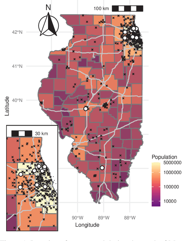 Abstract:Machine learning methods have seen increased application to geospatial environmental problems, such as precipitation nowcasting, haze forecasting, and crop yield prediction. However, many of the machine learning methods applied to mosquito population and disease forecasting do not inherently take into account the underlying spatial structure of the given data. In our work, we apply a spatially aware graph neural network model consisting of GraphSAGE layers to forecast the presence of West Nile virus in Illinois, to aid mosquito surveillance and abatement efforts within the state. More generally, we show that graph neural networks applied to irregularly sampled geospatial data can exceed the performance of a range of baseline methods including logistic regression, XGBoost, and fully-connected neural networks.