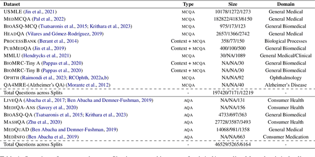 Abstract:There is vivid research on adapting Large Language Models (LLMs) to perform a variety of tasks in high-stakes domains such as healthcare. Despite their popularity, there is a lack of understanding of the extent and contributing factors that allow LLMs to recall relevant knowledge and combine it with presented information in the clinical and biomedical domain: a fundamental pre-requisite for success on down-stream tasks. Addressing this gap, we use Multiple Choice and Abstractive Question Answering to conduct a large-scale empirical study on 22 datasets in three generalist and three specialist biomedical sub-domains. Our multifaceted analysis of the performance of 15 LLMs, further broken down by sub-domain, source of knowledge and model architecture, uncovers success factors such as instruction tuning that lead to improved recall and comprehension. We further show that while recently proposed domain-adapted models may lack adequate knowledge, directly fine-tuning on our collected medical knowledge datasets shows encouraging results, even generalising to unseen specialist sub-domains. We complement the quantitative results with a skill-oriented manual error analysis, which reveals a significant gap between the models' capabilities to simply recall necessary knowledge and to integrate it with the presented context. To foster research and collaboration in this field we share M-QALM, our resources, standardised methodology, and evaluation results, with the research community to facilitate further advancements in clinical knowledge representation learning within language models.