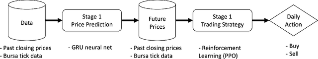 Abstract:The use of machine learning in algorithmic trading systems is increasingly common. In a typical set-up, supervised learning is used to predict the future prices of assets, and those predictions drive a simple trading and execution strategy. This is quite effective when the predictions have sufficient signal, markets are liquid, and transaction costs are low. However, those conditions often do not hold in thinly traded financial markets and markets for differentiated assets such as real estate or vehicles. In these markets, the trading strategy must consider the long-term effects of taking positions that are relatively more difficult to change. In this work, we propose a Reinforcement Learning (RL) algorithm that trades based on signals from a learned predictive model and addresses these challenges. We test our algorithm on 20+ years of equity data from Bursa Malaysia.