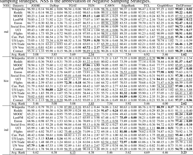 Abstract:We propose DyGFormer, a new Transformer-based architecture for dynamic graph learning that solely learns from the sequences of nodes' historical first-hop interactions. DyGFormer incorporates two distinct designs: a neighbor co-occurrence encoding scheme that explores the correlations of the source node and destination node based on their sequences; a patching technique that divides each sequence into multiple patches and feeds them to Transformer, allowing the model to effectively and efficiently benefit from longer histories. We also introduce DyGLib, a unified library with standard training pipelines, extensible coding interfaces, and comprehensive evaluating protocols to promote reproducible, scalable, and credible dynamic graph learning research. By performing extensive experiments on thirteen datasets from various domains for transductive/inductive dynamic link prediction and dynamic node classification tasks, we observe that: DyGFormer achieves state-of-the-art performance on most of the datasets, demonstrating the effectiveness of capturing nodes' correlations and long-term temporal dependencies; the results of baselines vary across different datasets and some findings are inconsistent with previous reports, which may be caused by their diverse pipelines and problematic implementations. We hope our work can provide new insights and facilitate the development of the dynamic graph learning field. All the resources including datasets, data loaders, algorithms, and executing scripts are publicly available at https://github.com/yule-BUAA/DyGLib.