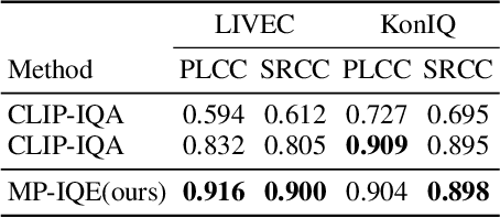 Abstract:Image Quality Assessment (IQA) models benefit significantly from semantic information, which allows them to treat different types of objects distinctly. Currently, leveraging semantic information to enhance IQA is a crucial research direction. Traditional methods, hindered by a lack of sufficiently annotated data, have employed the CLIP image-text pretraining model as their backbone to gain semantic awareness. However, the generalist nature of these pre-trained Vision-Language (VL) models often renders them suboptimal for IQA-specific tasks. Recent approaches have attempted to address this mismatch using prompt technology, but these solutions have shortcomings. Existing prompt-based VL models overly focus on incremental semantic information from text, neglecting the rich insights available from visual data analysis. This imbalance limits their performance improvements in IQA tasks. This paper introduces an innovative multi-modal prompt-based methodology for IQA. Our approach employs carefully crafted prompts that synergistically mine incremental semantic information from both visual and linguistic data. Specifically, in the visual branch, we introduce a multi-layer prompt structure to enhance the VL model's adaptability. In the text branch, we deploy a dual-prompt scheme that steers the model to recognize and differentiate between scene category and distortion type, thereby refining the model's capacity to assess image quality. Our experimental findings underscore the effectiveness of our method over existing Blind Image Quality Assessment (BIQA) approaches. Notably, it demonstrates competitive performance across various datasets. Our method achieves Spearman Rank Correlation Coefficient (SRCC) values of 0.961(surpassing 0.946 in CSIQ) and 0.941 (exceeding 0.930 in KADID), illustrating its robustness and accuracy in diverse contexts.