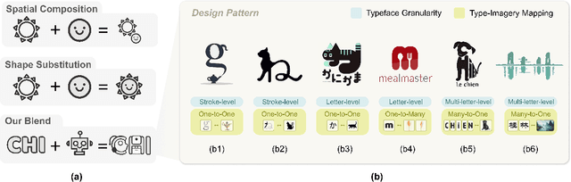 Abstract:Semantic typographic logos harmoniously blend typeface and imagery to represent semantic concepts while maintaining legibility. Conventional methods using spatial composition and shape substitution are hindered by the conflicting requirement for achieving seamless spatial fusion between geometrically dissimilar typefaces and semantics. While recent advances made AI generation of semantic typography possible, the end-to-end approaches exclude designer involvement and disregard personalized design. This paper presents TypeDance, an AI-assisted tool incorporating design rationales with the generative model for personalized semantic typographic logo design. It leverages combinable design priors extracted from uploaded image exemplars and supports type-imagery mapping at various structural granularity, achieving diverse aesthetic designs with flexible control. Additionally, we instantiate a comprehensive design workflow in TypeDance, including ideation, selection, generation, evaluation, and iteration. A two-task user evaluation, including imitation and creation, confirmed the usability of TypeDance in design across different usage scenarios