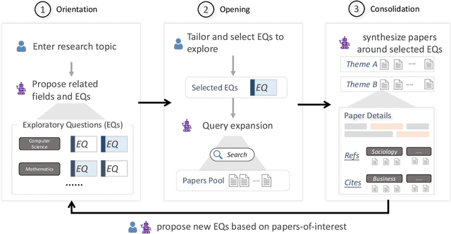Abstract:Interdisciplinary studies often require researchers to explore literature in diverse branches of knowledge. Yet, navigating through the highly scattered knowledge from unfamiliar disciplines poses a significant challenge. In this paper, we introduce DiscipLink, a novel interactive system that facilitates collaboration between researchers and large language models (LLMs) in interdisciplinary information seeking (IIS). Based on users' topics of interest, DiscipLink initiates exploratory questions from the perspectives of possible relevant fields of study, and users can further tailor these questions. DiscipLink then supports users in searching and screening papers under selected questions by automatically expanding queries with disciplinary-specific terminologies, extracting themes from retrieved papers, and highlighting the connections between papers and questions. Our evaluation, comprising a within-subject comparative experiment and an open-ended exploratory study, reveals that DiscipLink can effectively support researchers in breaking down disciplinary boundaries and integrating scattered knowledge in diverse fields. The findings underscore the potential of LLM-powered tools in fostering information-seeking practices and bolstering interdisciplinary research.