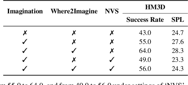 Abstract:Visual navigation is an essential skill for home-assistance robots, providing the object-searching ability to accomplish long-horizon daily tasks. Many recent approaches use Large Language Models (LLMs) for commonsense inference to improve exploration efficiency. However, the planning process of LLMs is limited within texts and it is difficult to represent the spatial occupancy and geometry layout only by texts. Both are important for making rational navigation decisions. In this work, we seek to unleash the spatial perception and planning ability of Vision-Language Models (VLMs), and explore whether the VLM, with only on-board camera captured RGB/RGB-D stream inputs, can efficiently finish the visual navigation tasks in a mapless manner. We achieve this by developing the imagination-powered navigation framework ImagineNav, which imagines the future observation images at valuable robot views and translates the complex navigation planning process into a rather simple best-view image selection problem for VLM. To generate appropriate candidate robot views for imagination, we introduce the Where2Imagine module, which is distilled to align with human navigation habits. Finally, to reach the VLM preferred views, an off-the-shelf point-goal navigation policy is utilized. Empirical experiments on the challenging open-vocabulary object navigation benchmarks demonstrates the superiority of our proposed system.