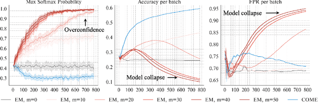Abstract:Machine learning models must continuously self-adjust themselves for novel data distribution in the open world. As the predominant principle, entropy minimization (EM) has been proven to be a simple yet effective cornerstone in existing test-time adaption (TTA) methods. While unfortunately its fatal limitation (i.e., overconfidence) tends to result in model collapse. For this issue, we propose to Conservatively Minimize the Entropy (COME), which is a simple drop-in replacement of traditional EM to elegantly address the limitation. In essence, COME explicitly models the uncertainty by characterizing a Dirichlet prior distribution over model predictions during TTA. By doing so, COME naturally regularizes the model to favor conservative confidence on unreliable samples. Theoretically, we provide a preliminary analysis to reveal the ability of COME in enhancing the optimization stability by introducing a data-adaptive lower bound on the entropy. Empirically, our method achieves state-of-the-art performance on commonly used benchmarks, showing significant improvements in terms of classification accuracy and uncertainty estimation under various settings including standard, life-long and open-world TTA, i.e., up to $34.5\%$ improvement on accuracy and $15.1\%$ on false positive rate.