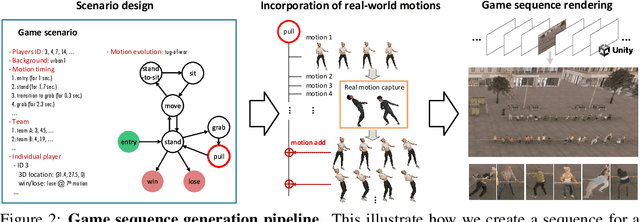 Abstract:We introduce Synthetic Playground (SynPlay), a new synthetic human dataset that aims to bring out the diversity of human appearance in the real world. We focus on two factors to achieve a level of diversity that has not yet been seen in previous works: i) realistic human motions and poses and ii) multiple camera viewpoints towards human instances. We first use a game engine and its library-provided elementary motions to create games where virtual players can take less-constrained and natural movements while following the game rules (i.e., rule-guided motion design as opposed to detail-guided design). We then augment the elementary motions with real human motions captured with a motion capture device. To render various human appearances in the games from multiple viewpoints, we use seven virtual cameras encompassing the ground and aerial views, capturing abundant aerial-vs-ground and dynamic-vs-static attributes of the scene. Through extensive and carefully-designed experiments, we show that using SynPlay in model training leads to enhanced accuracy over existing synthetic datasets for human detection and segmentation. The benefit of SynPlay becomes even greater for tasks in the data-scarce regime, such as few-shot and cross-domain learning tasks. These results clearly demonstrate that SynPlay can be used as an essential dataset with rich attributes of complex human appearances and poses suitable for model pretraining. SynPlay dataset comprising over 73k images and 6.5M human instances, is available for download at https://synplaydataset.github.io/.