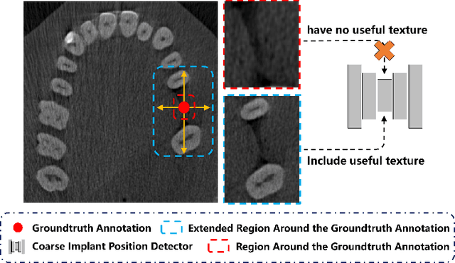 Abstract:In implant prosthesis treatment, the design of surgical guide requires lots of manual labors and is prone to subjective variations. When deep learning based methods has started to be applied to address this problem, the space between teeth are various and some of them might present similar texture characteristic with the actual implant region. Both problems make a big challenge for the implant position prediction. In this paper, we develop a two-stream implant position regression framework (TSIPR), which consists of an implant region detector (IRD) and a multi-scale patch embedding regression network (MSPENet), to address this issue. For the training of IRD, we extend the original annotation to provide additional supervisory information, which contains much more rich characteristic and do not introduce extra labeling costs. A multi-scale patch embedding module is designed for the MSPENet to adaptively extract features from the images with various tooth spacing. The global-local feature interaction block is designed to build the encoder of MSPENet, which combines the transformer and convolution for enriched feature representation. During inference, the RoI mask extracted from the IRD is used to refine the prediction results of the MSPENet. Extensive experiments on a dental implant dataset through five-fold cross-validation demonstrated that the proposed TSIPR achieves superior performance than existing methods.