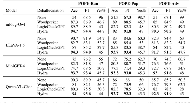 Abstract:To develop trustworthy Vision-Language Models (VLMs), it is essential to address adversarial robustness and hallucination mitigation, both of which impact factual accuracy in high-stakes applications such as defense and healthcare. Existing methods primarily focus on either adversarial defense or hallucination post-hoc correction, leaving a gap in unified robustness strategies. We introduce \textbf{Hydra}, an adaptive agentic framework that enhances plug-in VLMs through iterative reasoning, structured critiques, and cross-model verification, improving both resilience to adversarial perturbations and intrinsic model errors. Hydra employs an Action-Critique Loop, where it retrieves and critiques visual information, leveraging Chain-of-Thought (CoT) and In-Context Learning (ICL) techniques to refine outputs dynamically. Unlike static post-hoc correction methods, Hydra adapts to both adversarial manipulations and intrinsic model errors, making it robust to malicious perturbations and hallucination-related inaccuracies. We evaluate Hydra on four VLMs, three hallucination benchmarks, two adversarial attack strategies, and two adversarial defense methods, assessing performance on both clean and adversarial inputs. Results show that Hydra surpasses plug-in VLMs and state-of-the-art (SOTA) dehallucination methods, even without explicit adversarial defenses, demonstrating enhanced robustness and factual consistency. By bridging adversarial resistance and hallucination mitigation, Hydra provides a scalable, training-free solution for improving the reliability of VLMs in real-world applications.