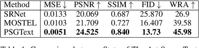 Abstract:Scene Text Editing (STE) aims to substitute text in an image with new desired text while preserving the background and styles of the original text. However, present techniques present a notable challenge in the generation of edited text images that exhibit a high degree of clarity and legibility. This challenge primarily stems from the inherent diversity found within various text types and the intricate textures of complex backgrounds. To address this challenge, this paper introduces a three-stage framework for transferring texts across text images. Initially, we introduce a text-swapping network that seamlessly substitutes the original text with the desired replacement. Subsequently, we incorporate a background inpainting network into our framework. This specialized network is designed to skillfully reconstruct background images, effectively addressing the voids left after the removal of the original text. This process meticulously preserves visual harmony and coherence in the background. Ultimately, the synthesis of outcomes from the text-swapping network and the background inpainting network is achieved through a fusion network, culminating in the creation of the meticulously edited final image. A demo video is included in the supplementary material.
