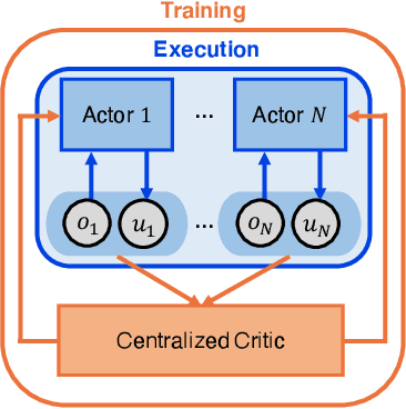 Abstract:We explore value-based solutions for multi-agent reinforcement learning (MARL) tasks in the centralized training with decentralized execution (CTDE) regime popularized recently. However, VDN and QMIX are representative examples that use the idea of factorization of the joint action-value function into individual ones for decentralized execution. VDN and QMIX address only a fraction of factorizable MARL tasks due to their structural constraint in factorization such as additivity and monotonicity. In this paper, we propose a new factorization method for MARL, QTRAN, which is free from such structural constraints and takes on a new approach to transforming the original joint action-value function into an easily factorizable one, with the same optimal actions. QTRAN guarantees more general factorization than VDN or QMIX, thus covering a much wider class of MARL tasks than does previous methods. Our experiments for the tasks of multi-domain Gaussian-squeeze and modified predator-prey demonstrate QTRAN's superior performance with especially larger margins in games whose payoffs penalize non-cooperative behavior more aggressively.