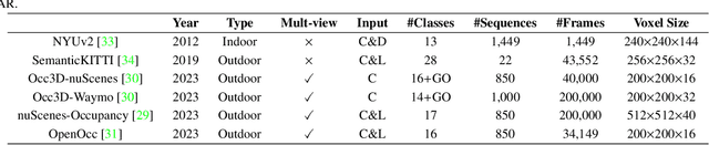 Abstract:In recent years, autonomous driving has garnered escalating attention for its potential to relieve drivers' burdens and improve driving safety. Vision-based 3D occupancy prediction, which predicts the spatial occupancy status and semantics of 3D voxel grids around the autonomous vehicle from image inputs, is an emerging perception task suitable for cost-effective perception system of autonomous driving. Although numerous studies have demonstrated the greater advantages of 3D occupancy prediction over object-centric perception tasks, there is still a lack of a dedicated review focusing on this rapidly developing field. In this paper, we first introduce the background of vision-based 3D occupancy prediction and discuss the challenges in this task. Secondly, we conduct a comprehensive survey of the progress in vision-based 3D occupancy prediction from three aspects: feature enhancement, deployment friendliness and label efficiency, and provide an in-depth analysis of the potentials and challenges of each category of methods. Finally, we present a summary of prevailing research trends and propose some inspiring future outlooks. To provide a valuable reference for researchers, a regularly updated collection of related papers, datasets, and codes is organized at https://github.com/zya3d/Awesome-3D-Occupancy-Prediction.