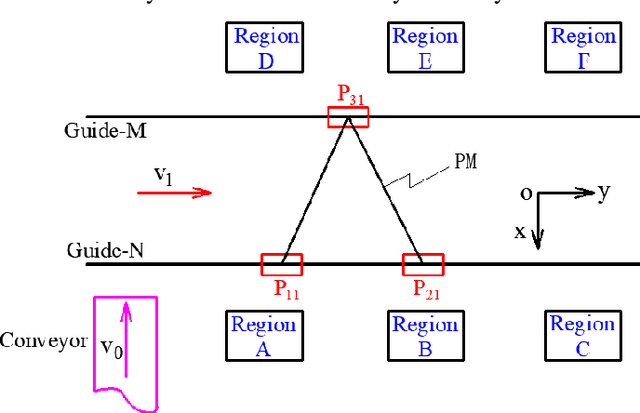 Abstract:This article presents a new three-degree-of-freedom (3-DOF) parallel mechanism (PM) with two translations and one rotation (2T1R), designed based on the topological design theory of the parallel mechanism using position and orientation characteristics (POC). The PM is primarily intended for use in package sorting and delivery. The mobile platform of the PM moves along a translation axis, picks up objects from a conveyor belt, and tilts them to either side of the axis. We first calculate the PM's topological characteristics, such as the degree of freedom (DOF) and the degree of coupling, and provide its topological analytical formula to represent the topological information of the PM. Next, we solve the direct and inverse kinematic models based on the kinematic modelling principle using the topological features. The models are purely analytic and are broken down into a series of quadratic equations, making them suitable for use in an industrial robot. We also study the singular configurations to identify the serial and parallel singularities. Using the decoupling properties, we size the mechanism to address the package sorting and depositing problem using an algebraic approach. To determine the smallest segment lengths, we use a cylindrical algebraic decomposition to solve a system with inequalities.