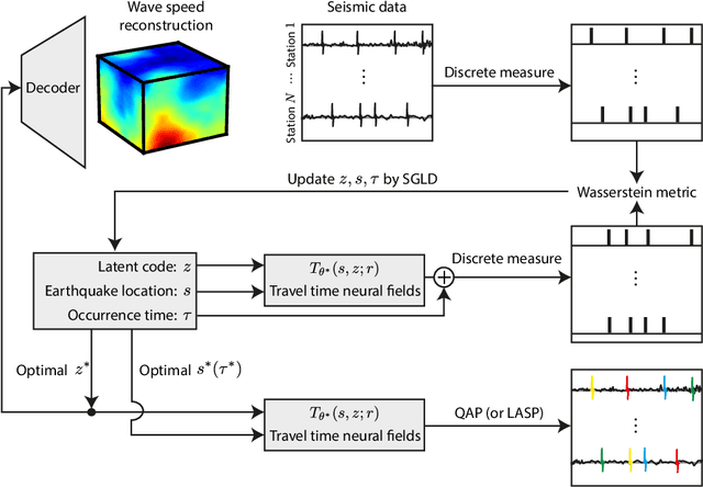Phase association groups seismic wave arrivals according to their originating earthquakes. It is a fundamental task in a seismic data processing pipeline, but challenging to perform for smaller, high-rate seismic events which carry fundamental information about earthquake dynamics, especially with a commonly assumed inaccurate wave speed model. As a consequence, most association methods focus on larger events that occur at a lower rate and are thus easier to associate, even though microseismicity provides a valuable description of the elastic medium properties in the subsurface. In this paper, we show that association is possible at rates much higher than previously reported even when the wave speed is unknown. We propose Harpa, a high-rate seismic phase association method which leverages deep neural fields to build generative models of wave speeds and associated travel times, and first solves a joint spatio--temporal source localization and wave speed recovery problem, followed by association. We obviate the need for associated phases by interpreting arrival time data as probability measures and using an optimal transport loss to enforce data fidelity. The joint recovery problem is known to admit a unique solution under certain conditions but due to the non-convexity of the corresponding loss a simple gradient scheme converges to poor local minima. We show that this is effectively mitigated by stochastic gradient Langevin dynamics (SGLD). Numerical experiments show that \harpa~efficiently associates high-rate seismicity clouds over complex, unknown wave speeds and graciously handles noisy and missing picks.