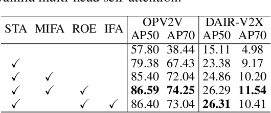 Abstract:Collaborative visual perception methods have gained widespread attention in the autonomous driving community in recent years due to their ability to address sensor limitation problems. However, the absence of explicit depth information often makes it difficult for camera-based perception systems, e.g., 3D object detection, to generate accurate predictions. To alleviate the ambiguity in depth estimation, we propose RayFusion, a ray-based fusion method for collaborative visual perception. Using ray occupancy information from collaborators, RayFusion reduces redundancy and false positive predictions along camera rays, enhancing the detection performance of purely camera-based collaborative perception systems. Comprehensive experiments show that our method consistently outperforms existing state-of-the-art models, substantially advancing the performance of collaborative visual perception. The code is available at https://github.com/wangsh0111/RayFusion.