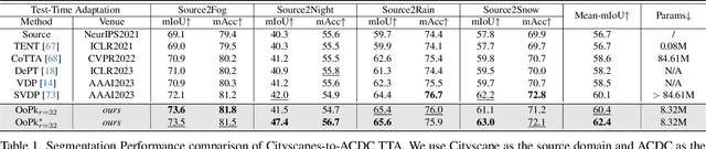 Abstract:Continual Test Time Adaptation (CTTA) is a task that requires a source pre-trained model to continually adapt to new scenarios with changing target distributions. Existing CTTA methods primarily focus on mitigating the challenges of catastrophic forgetting and error accumulation. Though there have been emerging methods based on forgetting adaptation with parameter-efficient fine-tuning, they still struggle to balance competitive performance and efficient model adaptation, particularly in complex tasks like semantic segmentation. In this paper, to tackle the above issues, we propose a novel pipeline, Orthogonal Projection Subspace to aggregate online Prior-knowledge, dubbed OoPk. Specifically, we first project a tuning subspace orthogonally which allows the model to adapt to new domains while preserving the knowledge integrity of the pre-trained source model to alleviate catastrophic forgetting. Then, we elaborate an online prior-knowledge aggregation strategy that employs an aggressive yet efficient image masking strategy to mimic potential target dynamism, enhancing the student model's domain adaptability. This further gradually ameliorates the teacher model's knowledge, ensuring high-quality pseudo labels and reducing error accumulation. We demonstrate our method with extensive experiments that surpass previous CTTA methods and achieve competitive performances across various continual TTA benchmarks in semantic segmentation tasks.